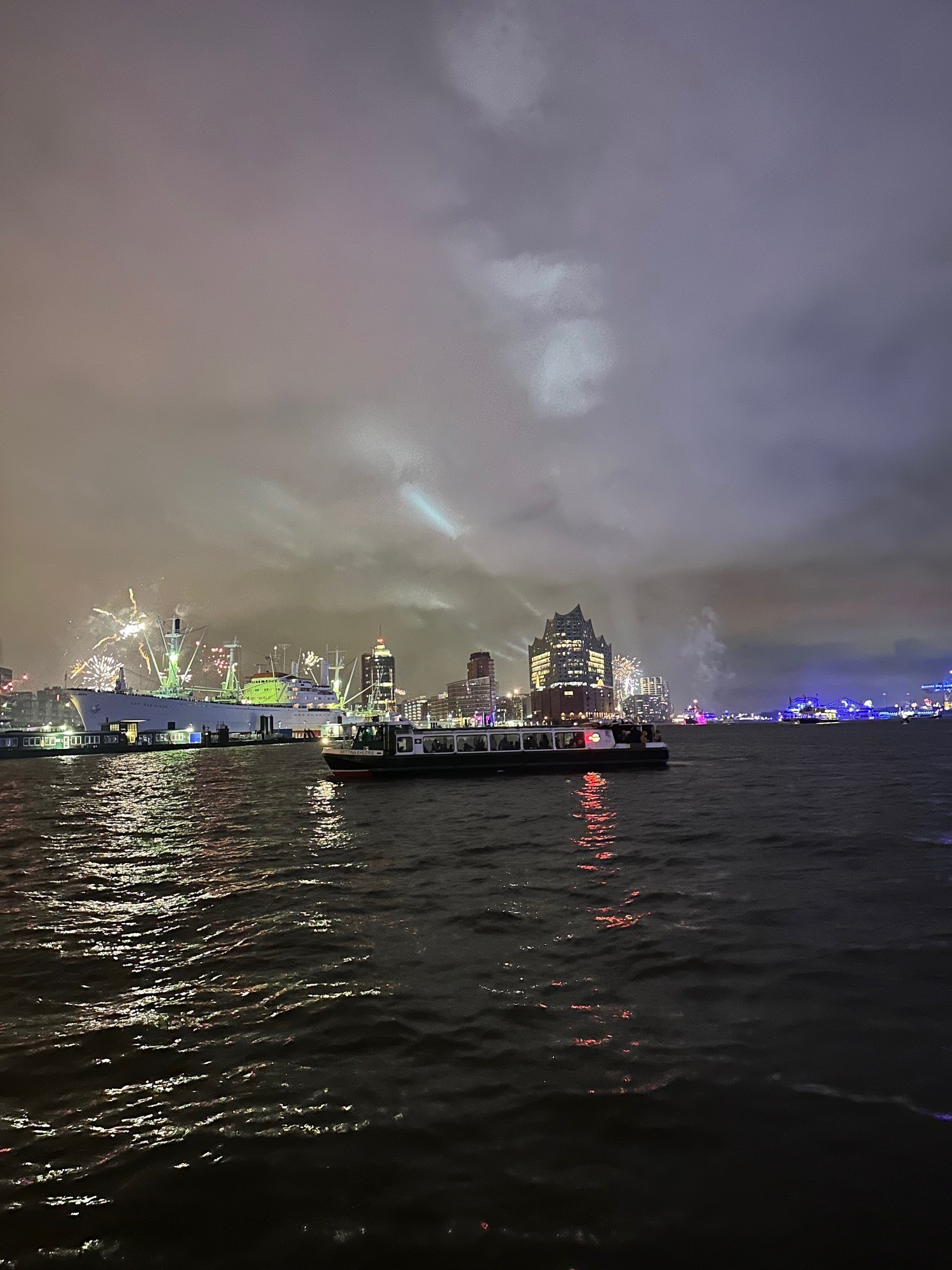 unsere Silvesterfahrt ist eine zweistündige Tour, die Sie zunächst in den beleuchteten Hafen hinein führt und Ihnen die besondere Stimmung nahebringt, die nur im Winter zu erleben ist. Anschließend legt sich die Barkasse vor den Landungsbrücken in den Strom, in Erwartung des wunderschönen Feuerwerks. Begrüßen Sie das neue Jahr 2027 mit unzähligen Barkassen und anderen Schiffen auf der Elbe und mit Tausenden Menschen an der Hafenkante.